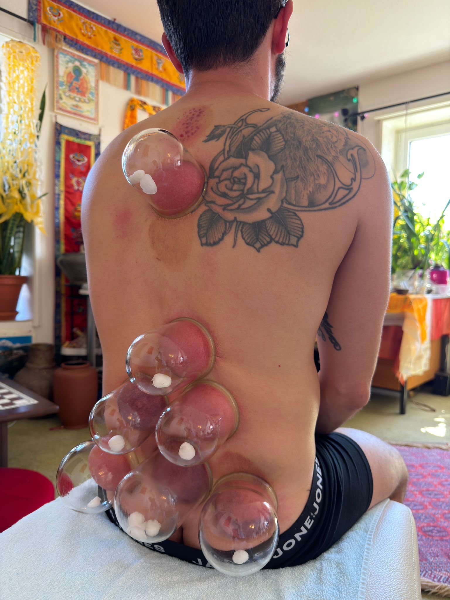 The cupping glasses are placed on the skin, and by heating them or drawing out the air, a vacuum is created which draws the skin into the glass. This stimulates blood circulation, relieves tension and harmonises the flow of energy within the body.